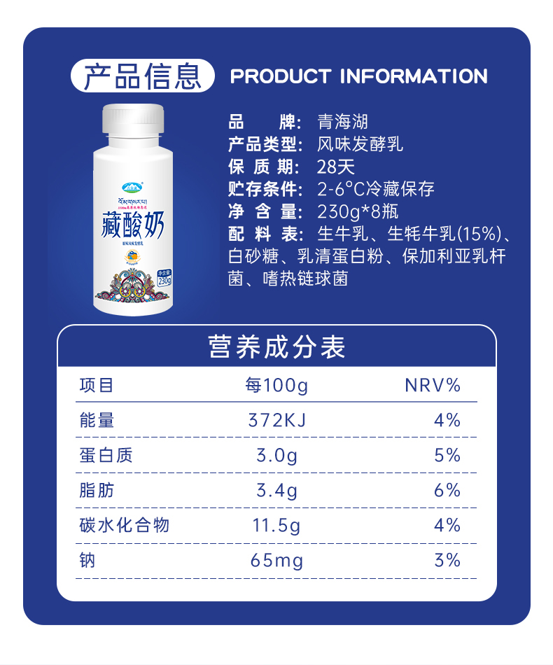 230ml鲜奶含15%牦牛奶