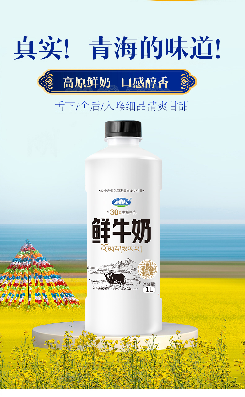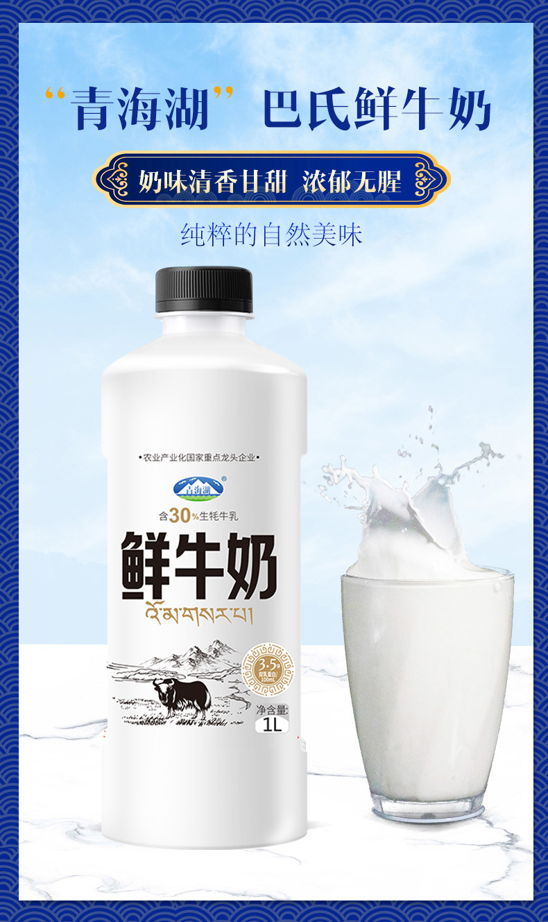 青海湖巴氏鲜奶,添加30%的牦牛奶,味道更纯正