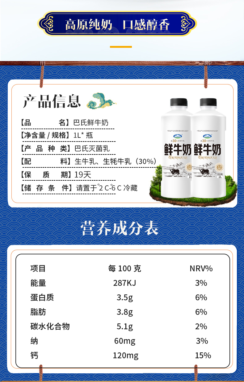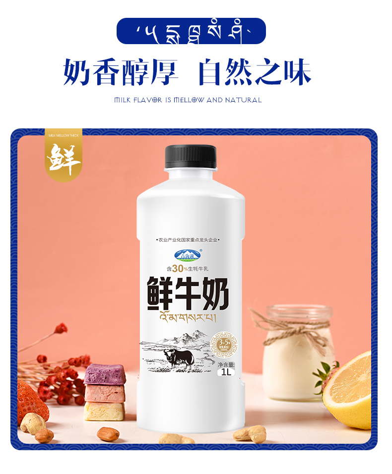 1L鲜奶含30%牦牛奶