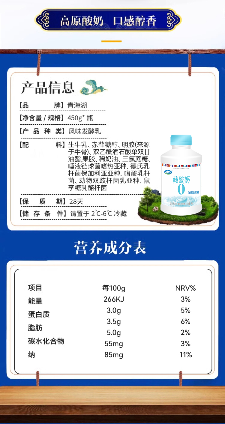 0蔗糖青海湖藏酸奶450g